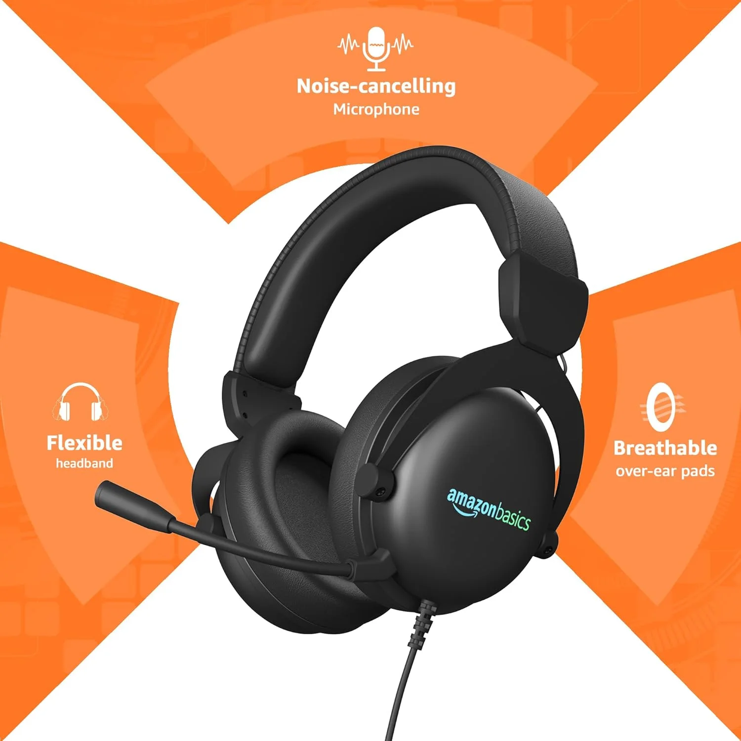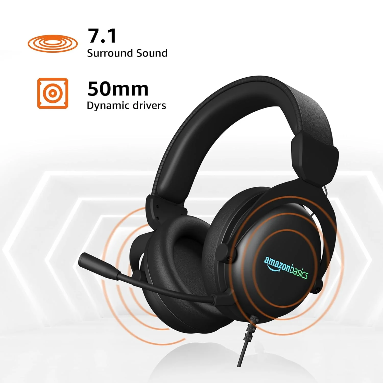Amazon Basics Wired Over The Ear Gaming Headphones with Mic | RGB | 7.1 Channel Surround Audio | Remote Control (Plastic, Black)