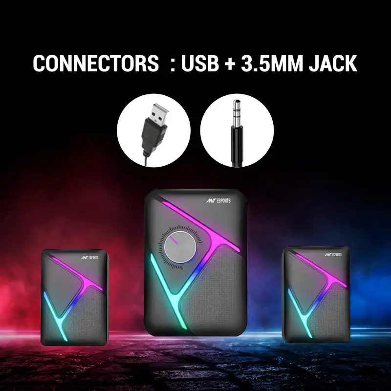 Ant Esports GS270 2.1 Stereo Wired Gaming Speakers with Subwoofer, RGB LED Lights, Stereo Bass 11W Multimedia Speakers for PC, Laptop, Tablet, Cellphone – Black