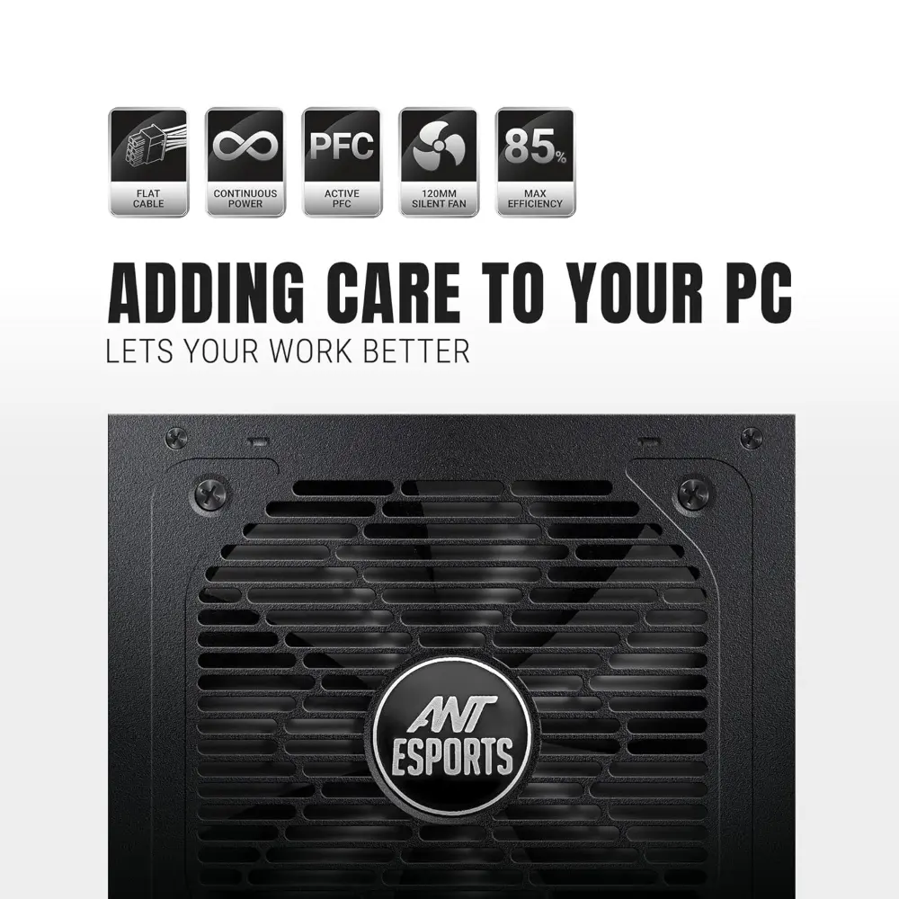 Ant Esports RX650 650 Watt 80 Plus 80 Plus Bronze SMPS | Power Supply for PC with Smooth and Silent 120mm Fan