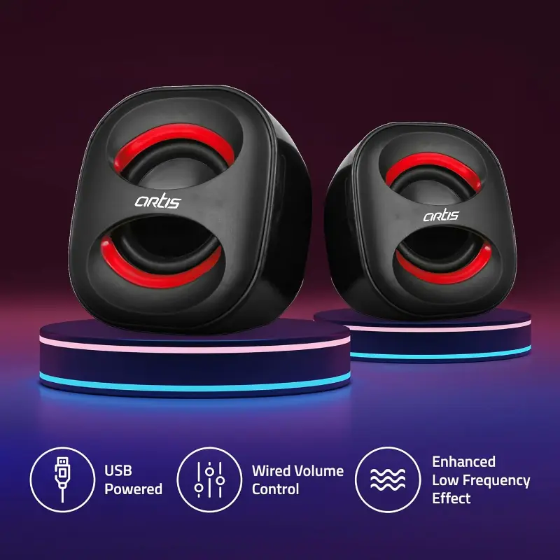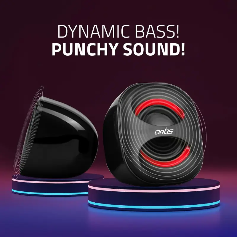 The Artis Mini 2.0 is a compact, USB-powered stereo speaker system designed for desktops, laptops and other devices with 3.5 mm audio output. With its sleek form factor and plug-and-play usability, it’s ideal for users who want better audio without bulky hardware.