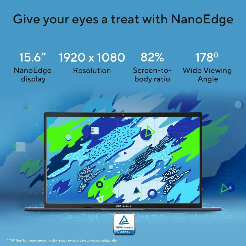 Easy on your eyes – Give your eyes a treat with Vivobook 15’s clear, slim-bezel NanoEdge display