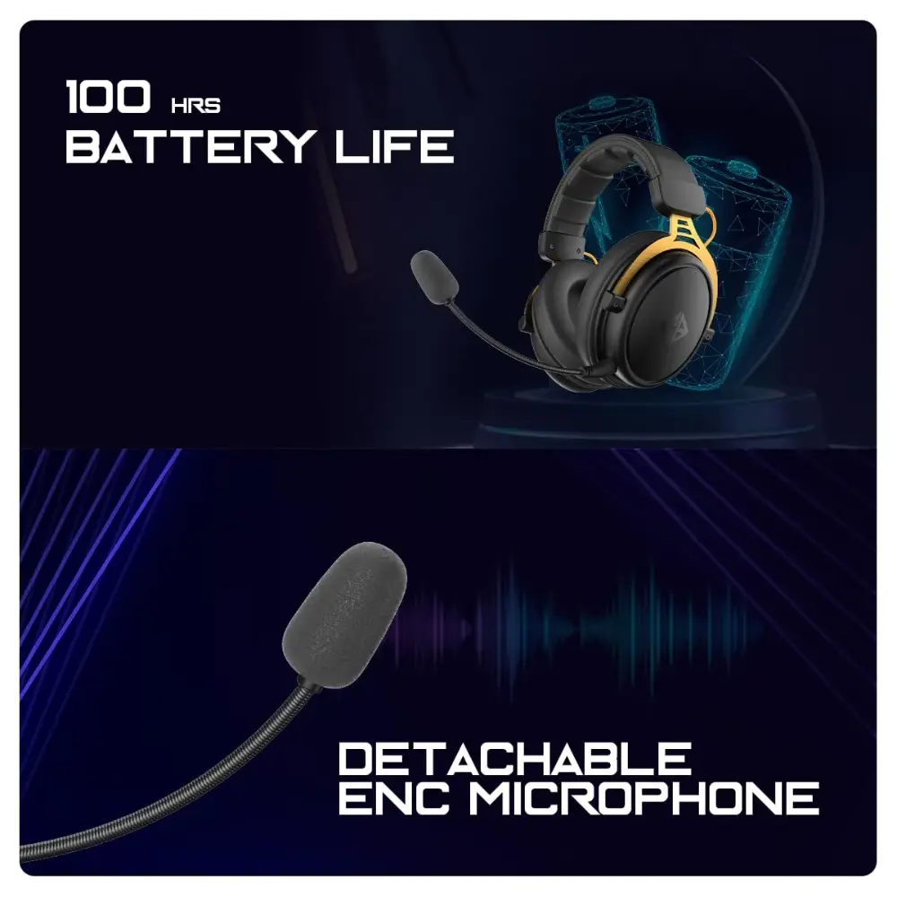 Key Features | Dual Mode- 2.4 Ghz Wireless + Bluetooth Headset, 100 Hours Massive battery Life, Extreme Low Latency, ENC Microphone, 3 EQ Modes- Music, Movies and Game mode |