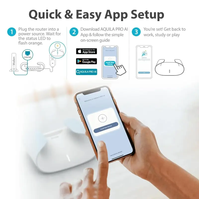 AQUILA PRO AI, Smart Wi-Fi, Smart Life — Experience the ultimate smart home networking solution with AQUILA PRO AI, built with advanced AI-enabled capabilities for whole home fast and reliable Wi-Fi coverage.