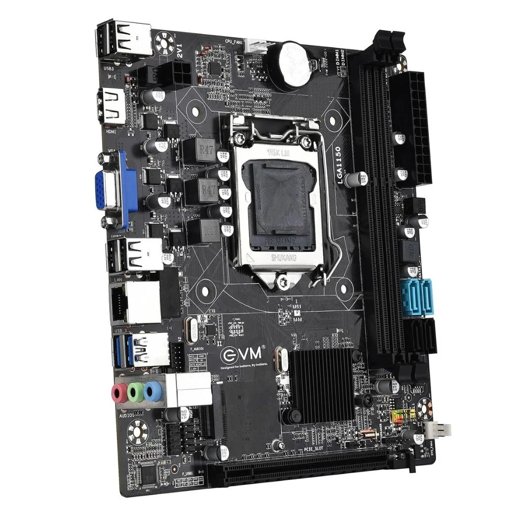 Compatibility: The EVM DDR3 Motherboard is compatible with Intel Socket 1150 for 4th Generation Core i7/Core i5/Core i3/Pentium/Celeron processors, ensuring a wide range of processor compatibility options.
