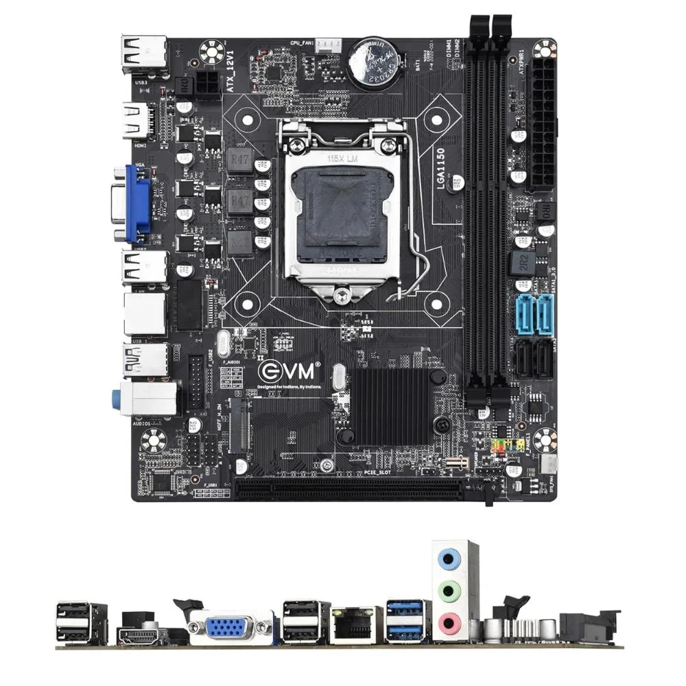 EVM H81JEL DDR3 Motherboard with NVME Slot-Socket 1150 for 4th Gen Intel Core i7/i5/i3, Supports DDR3 1066/1333 SDRAM, SATA 3Gb/s Ports, PCI Express x16 and x1 Slots (EVMH81JEL)