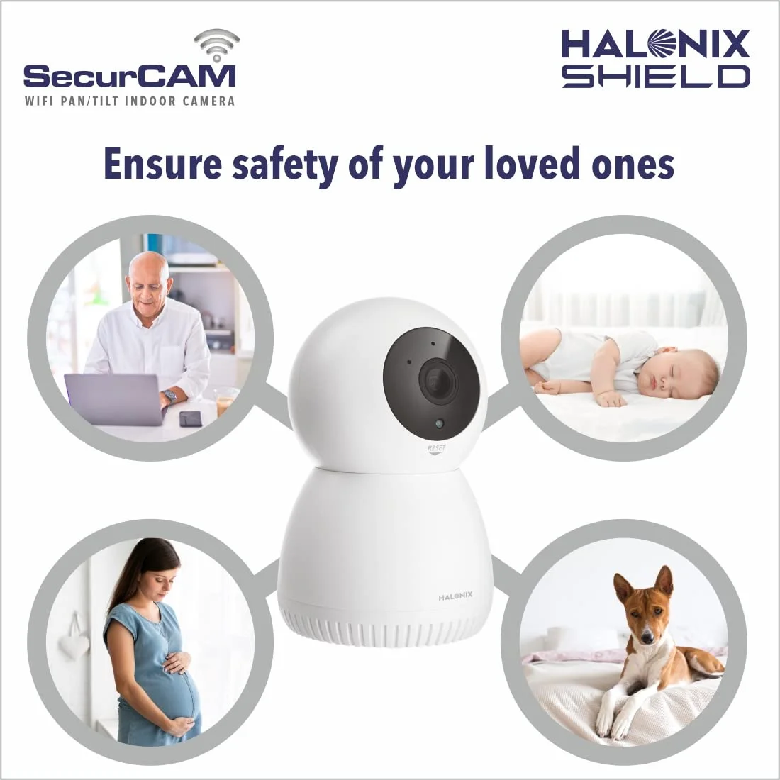 Halonix SecurCAM 360° 3MP 3K Pro HD Pan/Tilt Wi-Fi Smart Home Security Camera, 8X Digital Zoom, 2-Way Audio, Night Vision, Motion Detection, SD Card Slot, Live View, Works with Android and iOS (White)