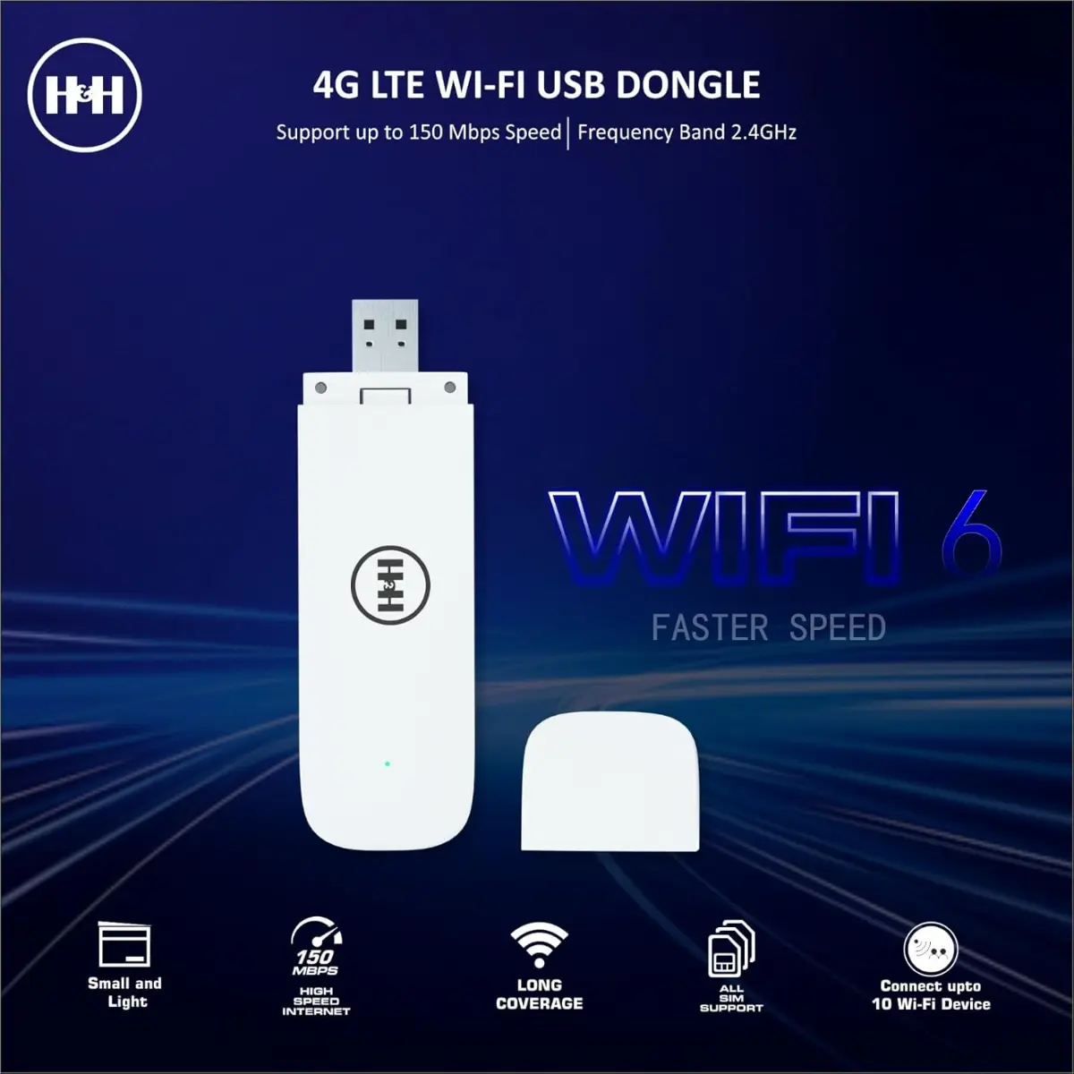 H&H 4G Dongle with All Sim Support | Plug & Play Data Card with Up to 150Mbps Data Speed | 4G Data Card with Wi-Fi Hotspot | Fast 4G Wi-Fi Dongle for Smart TV (White)