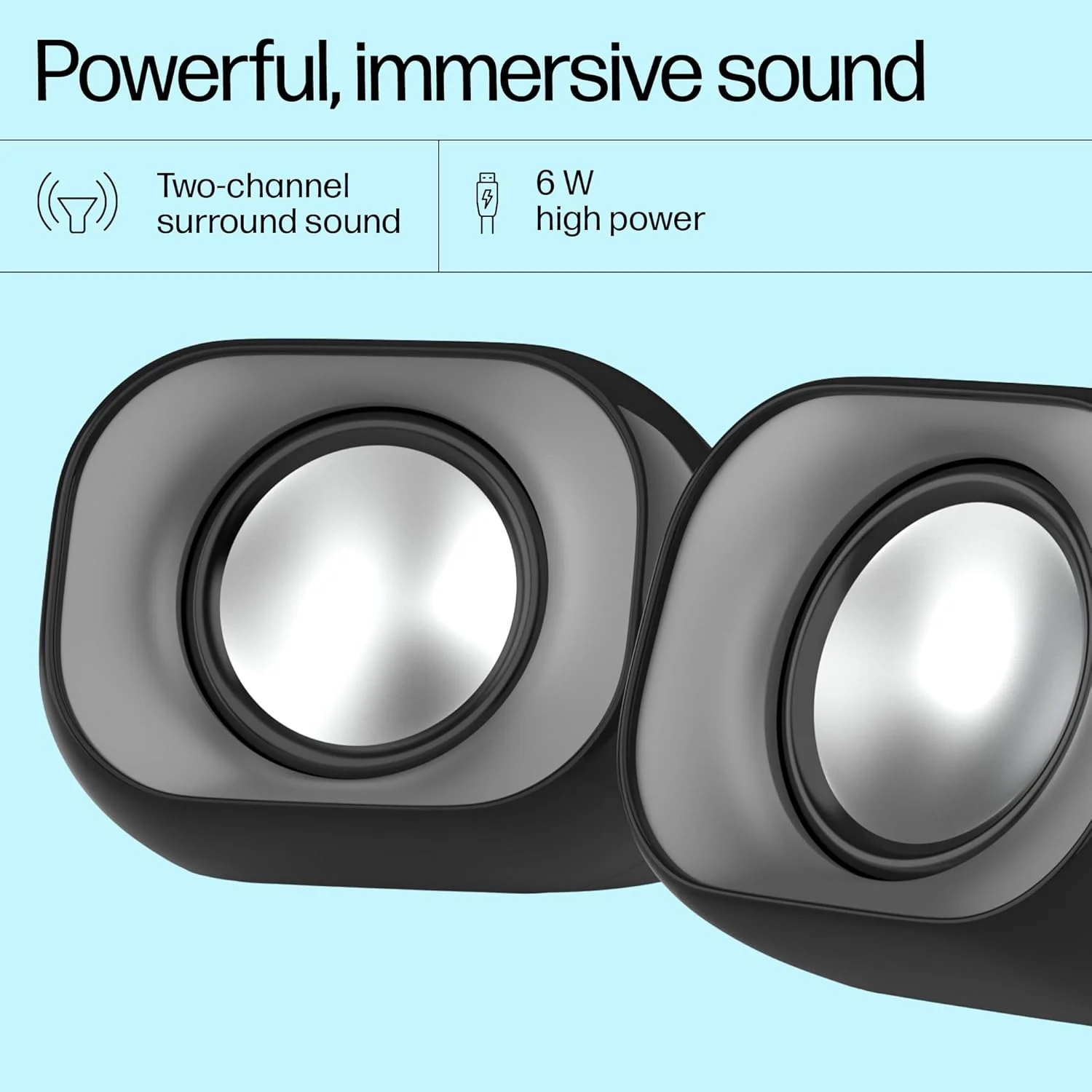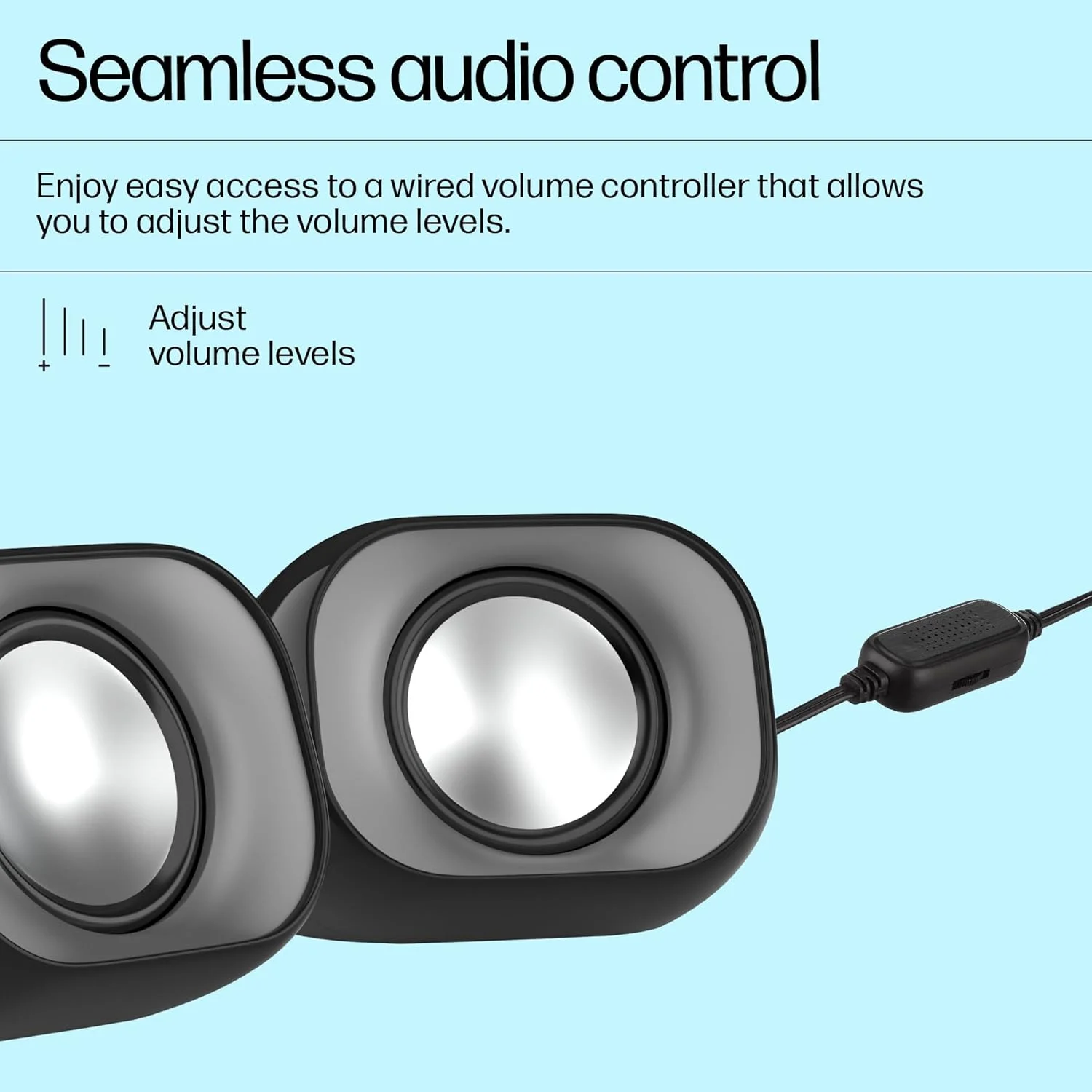 HP DHS-2111 Wired Desktop Speaker, 2-Channel Surround Sound, 3.5mm aux Connectivity, PC and Phone Compatible, Easy Volume Controls, 0.27 kg, Black, 8C575AA