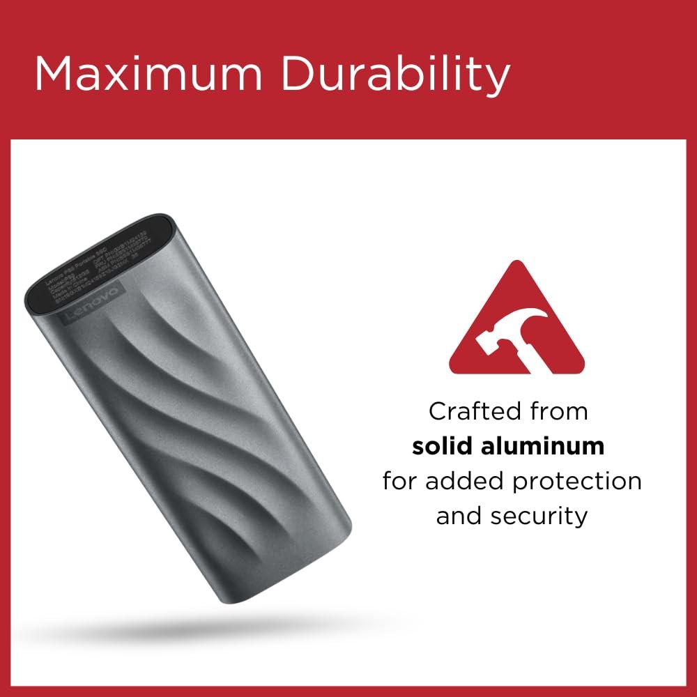 Lenovo PS8 Portable SSD – 1TB, R 1050 MB/s, W 1000 MB/s| USB-C Universal Compatibility | Windows, MacOS & Android |for Creators, Students & Gamers| External SSD| Aluminium Body, Grey