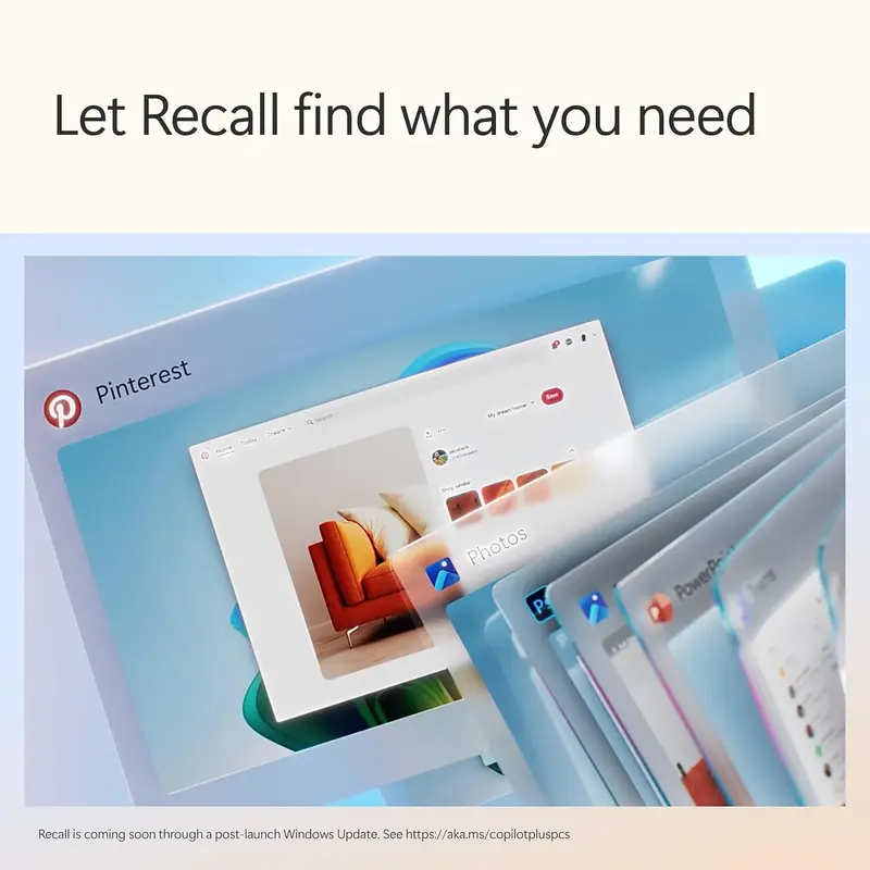 Recall instantly – Searching for a document, email or web page on your PC can be time-consuming. Now you can just describe how you remember something and Recall will find it, instantly.