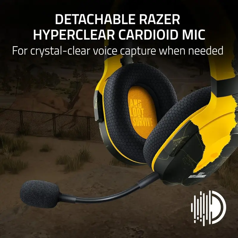 - Detachable Razer HyperClear Cardioid Mic: While the mic is tuned to suppress background noise for enhanced voice capture during gaming, it can also be easily removed to make the headset more travel-friendly for mobile use