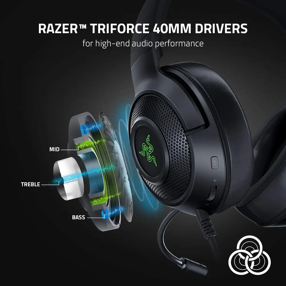 Patented Audio Technology – Equipped with 40mm drivers, the RAZER Kraken V3 X Wired Gaming Headset offers an immersive audio experience by separating high, mid, and low frequencies. This patented technology allows each driver to be tuned for specific frequencies, resulting in lifelike audio reproduction.