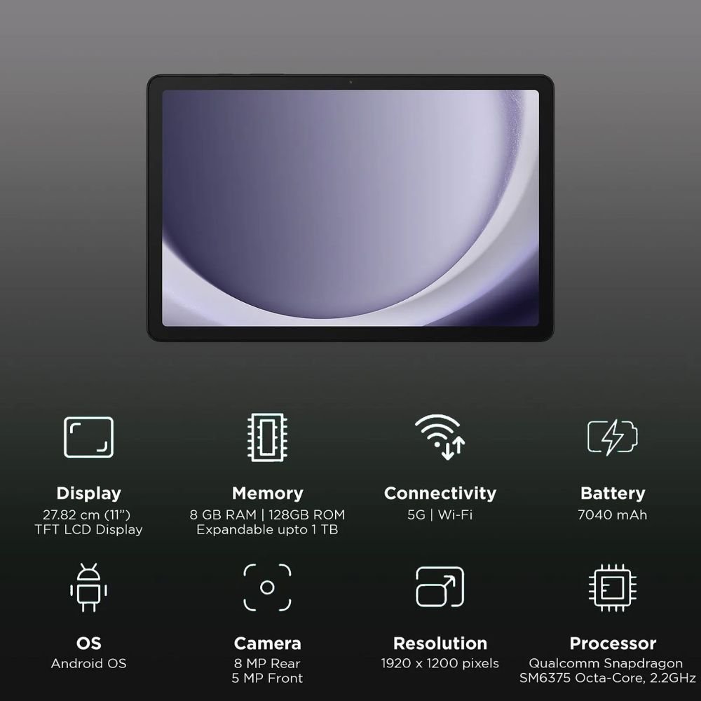 Samsung Galaxy Tab A9+ 27.94 cm (11.0 inch) Display, RAM 8 GB, ROM 128 GB Expandable, Wi-Fi+5G, Tablet, (Silver)