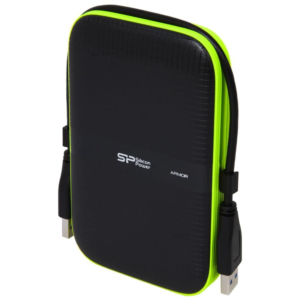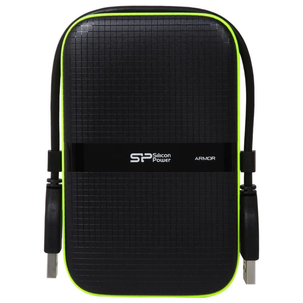 Silicon Power 1TB Armor A60 Shockproof and Water-Resistant Portable Hard Drive USB 3.0 Model SP010TBPHDA60S3K Black/Green Edition